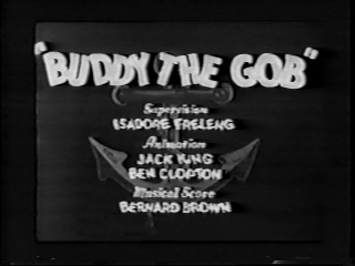 Our carton begins with an army of battleships sailing the seas, they are sailing through very choppy waves, there are these whistles that are making whistling sounds as well as cannons. Meanwhile, inside the ship is Buddy who is actually an American sailor in this navy ship (gob is a slang for a sailor), and he is inside doing some laundry by scrubbing a pair of long underwear. The long underwear then rinses itself off like a dog shaking after jumping onto a lake/river/beach/bath, etc. Buddy then hands the underwear a towel and dries off with a towel. Okay, if it's like a dog, then why need to dry with a towel - dogs can't do that.