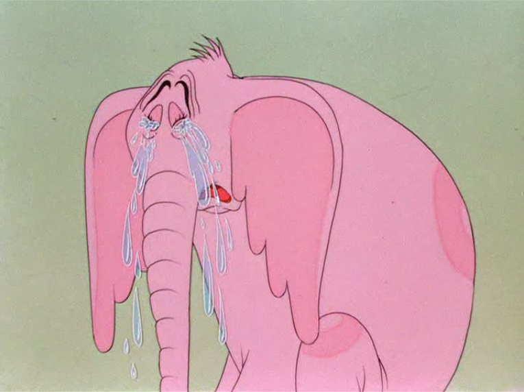 As the rain floods up Horton's entire body, Horton speaks with hhis trunk peaking at the surface. The added gag of Horton speaking with his trunk is so subtle and bizarre in a gag approach, by adding a tongue at the end of his tuba, but then again, only Clampett could make such a wild gag appear subtle.